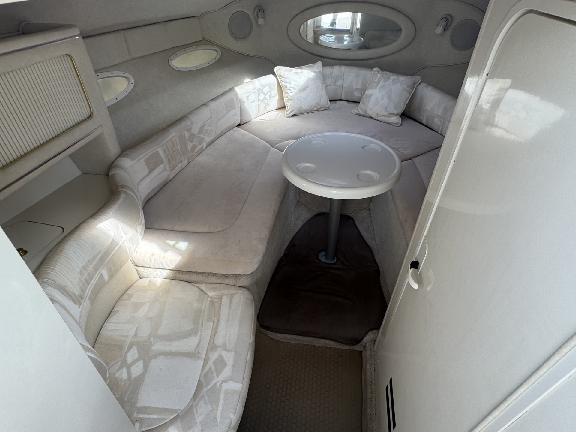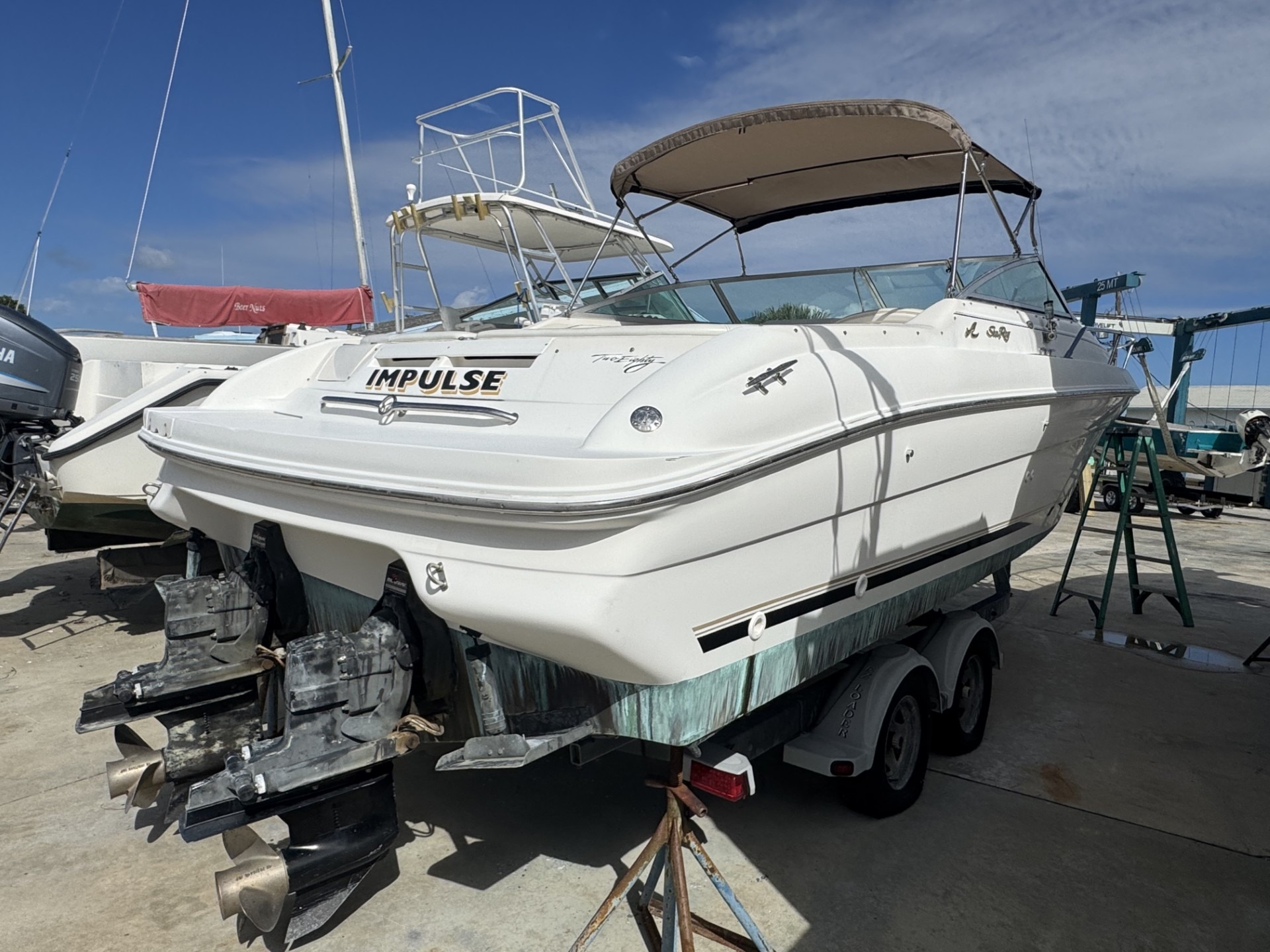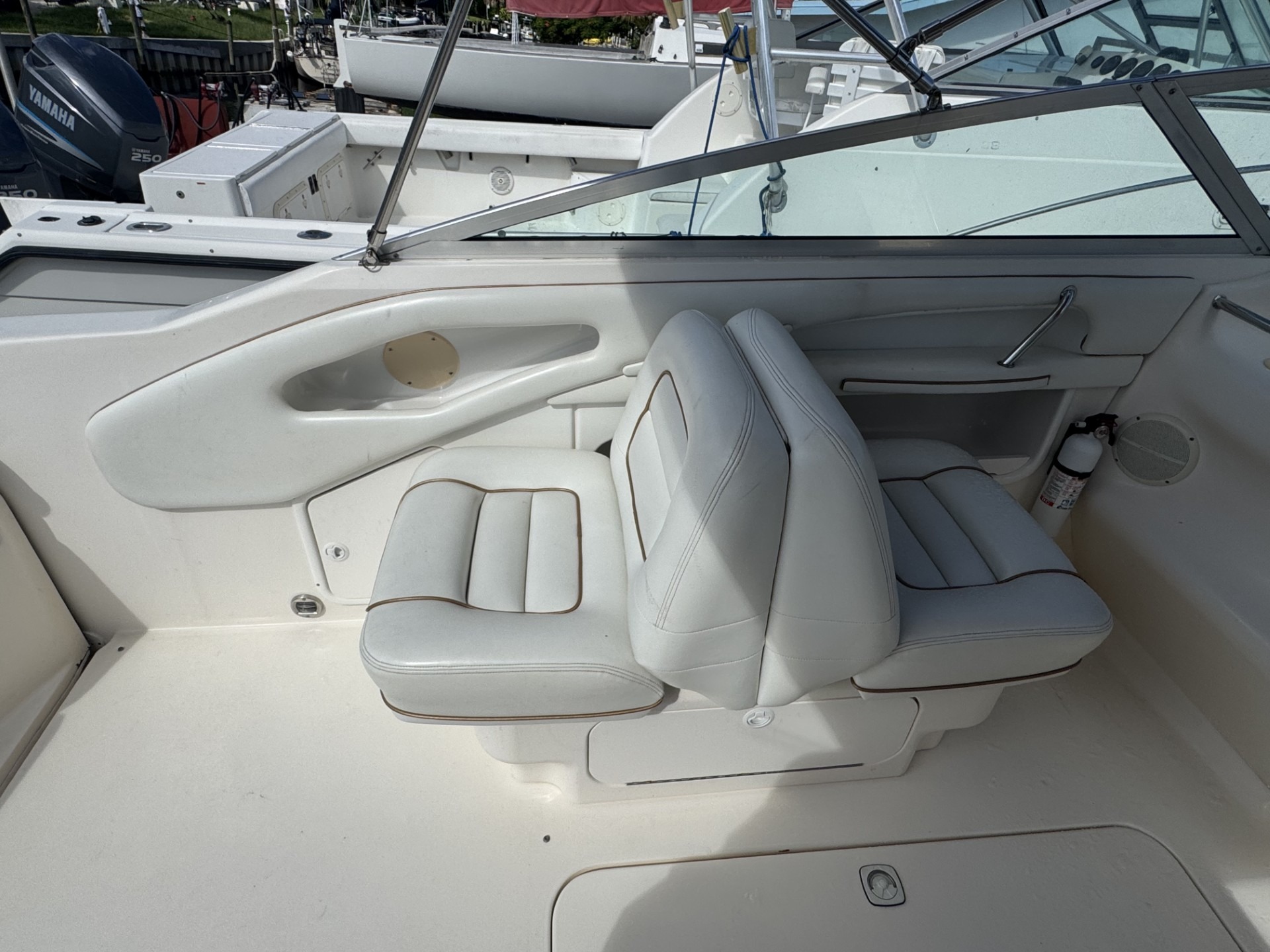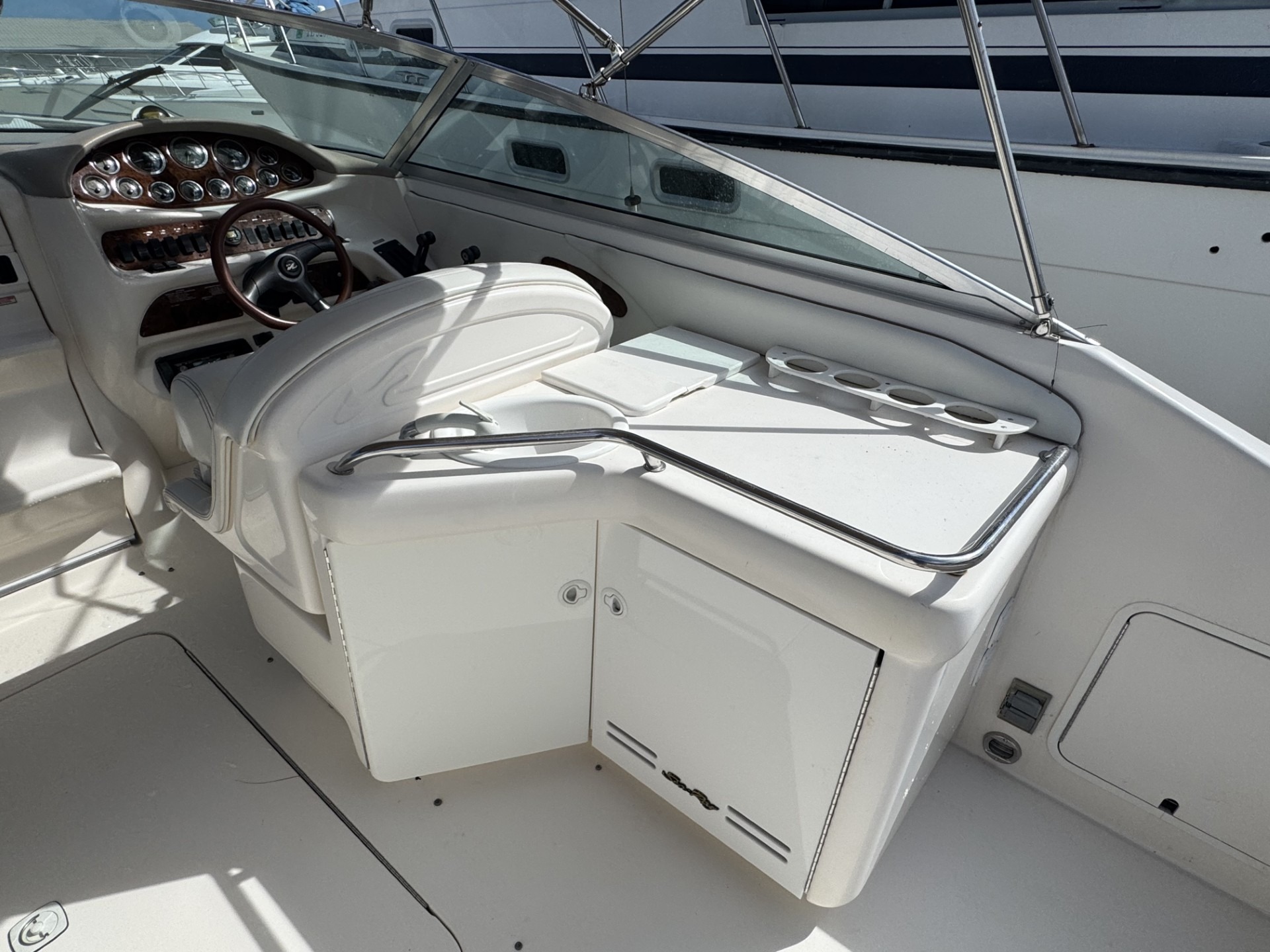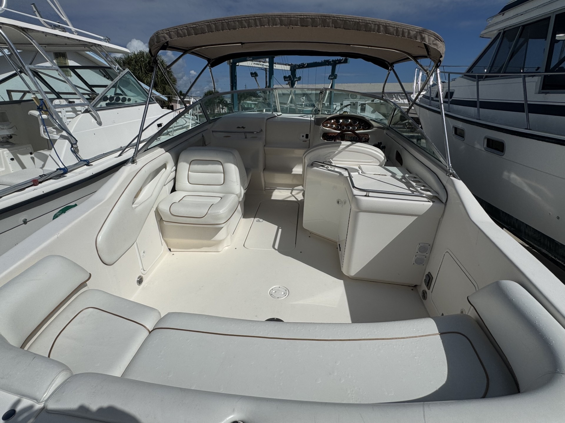 Perfect for your weekend cruiser or those into watersports. She’s got a bimini top, intergrated swim platform, and spacious cockpit.