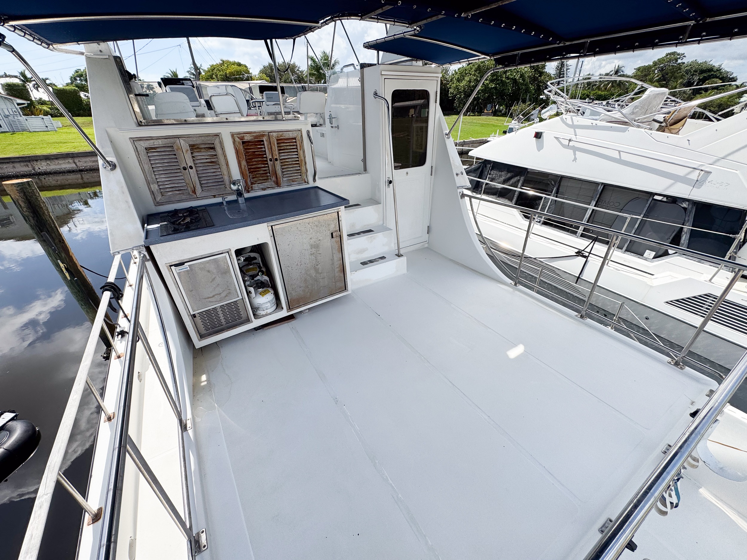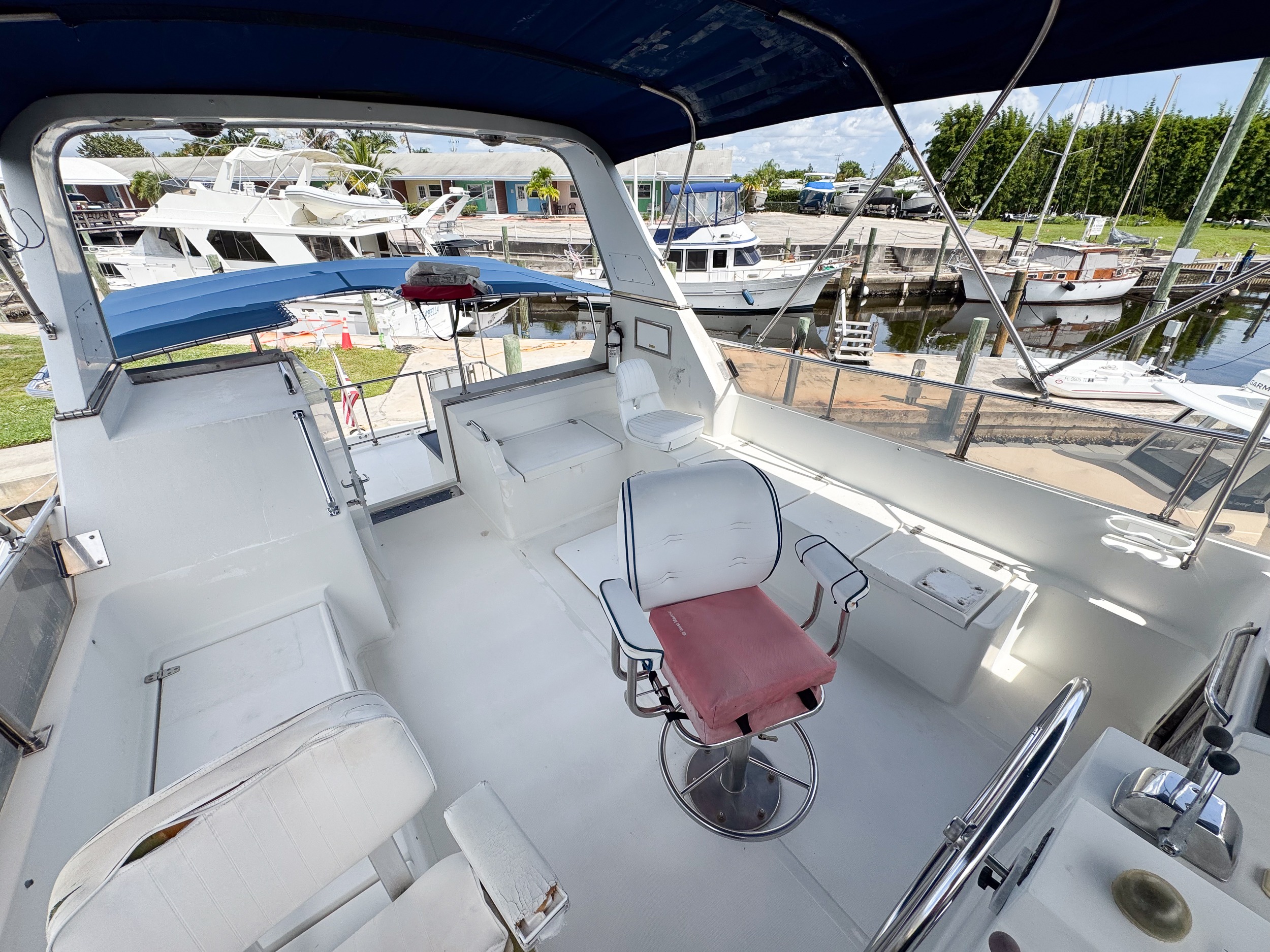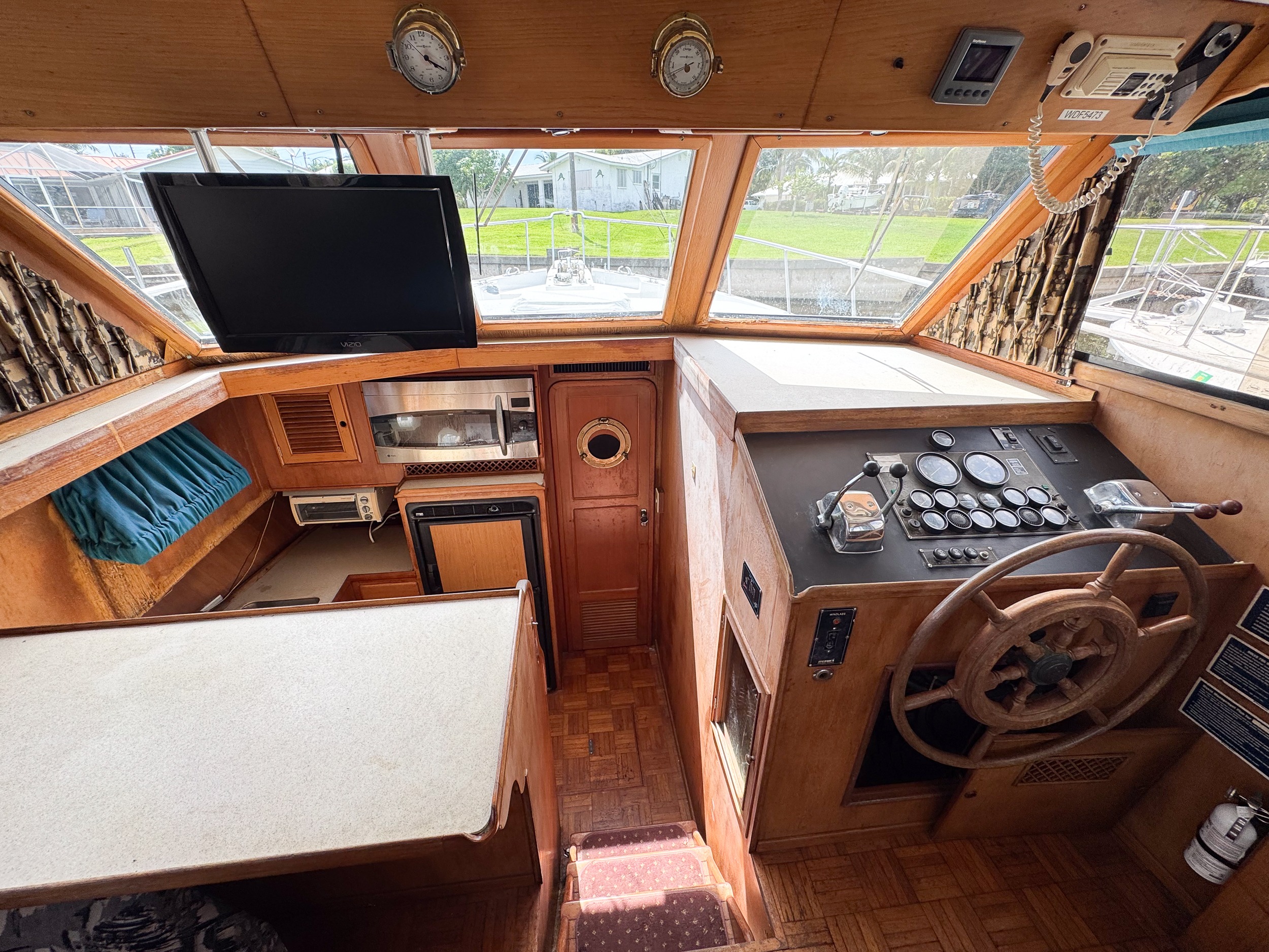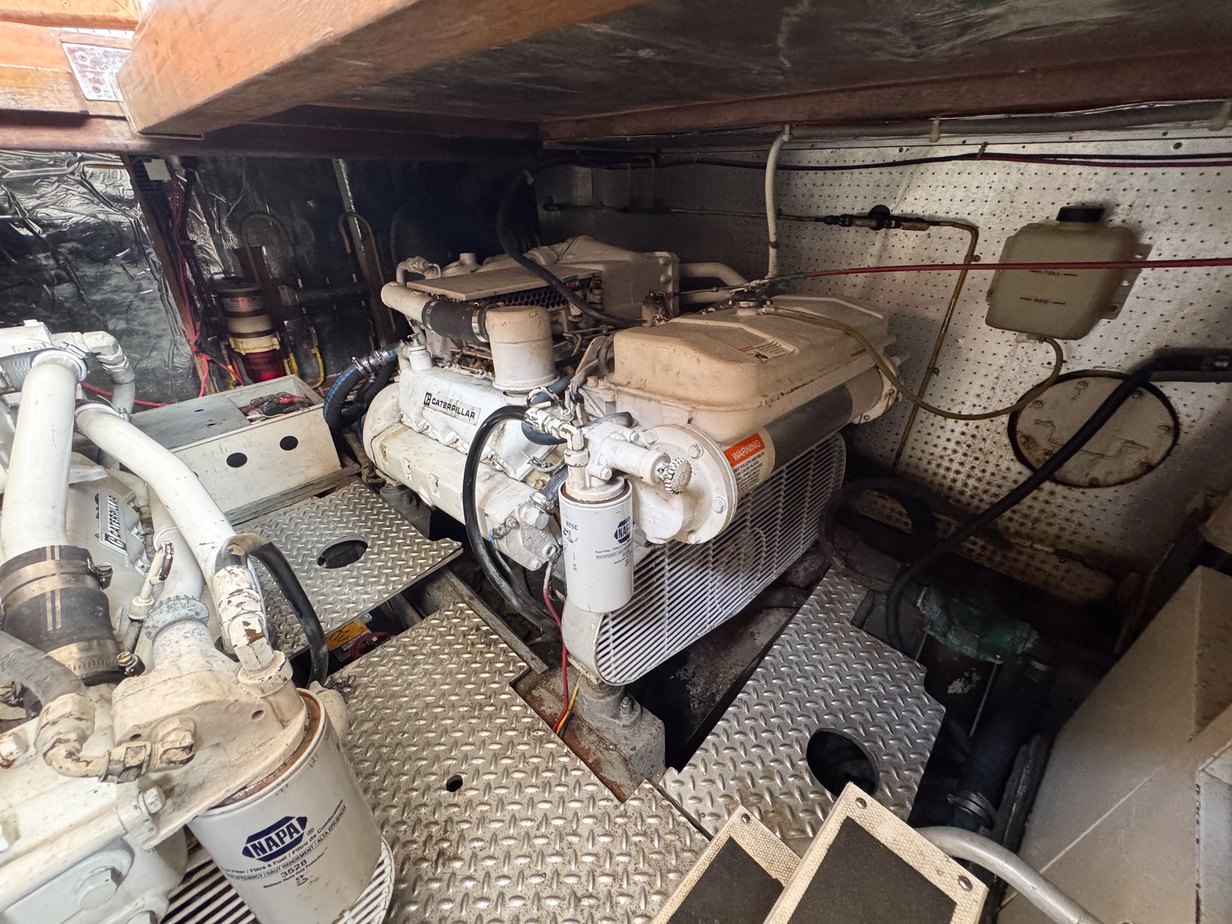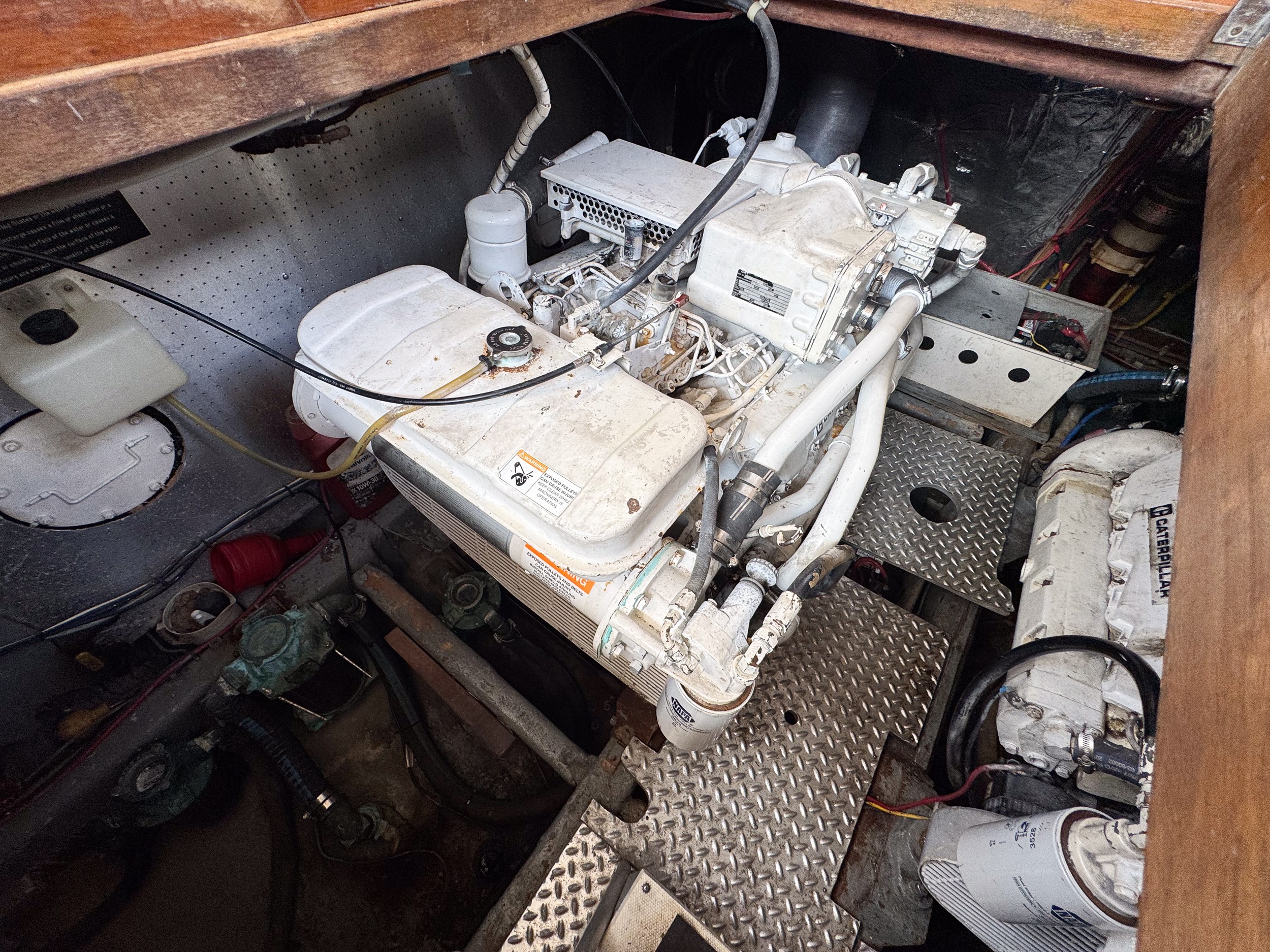 Powered by Twin Cat 3208 inboard diesels. Port has 1451 hrs, and Starboard has 1572 hrs. Both motors run well.