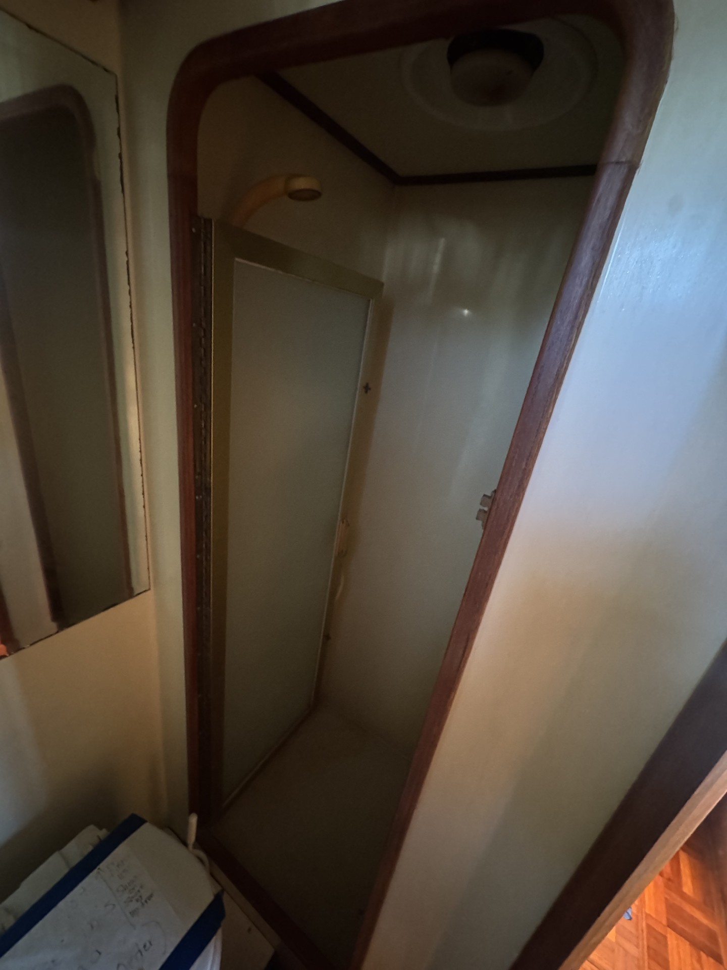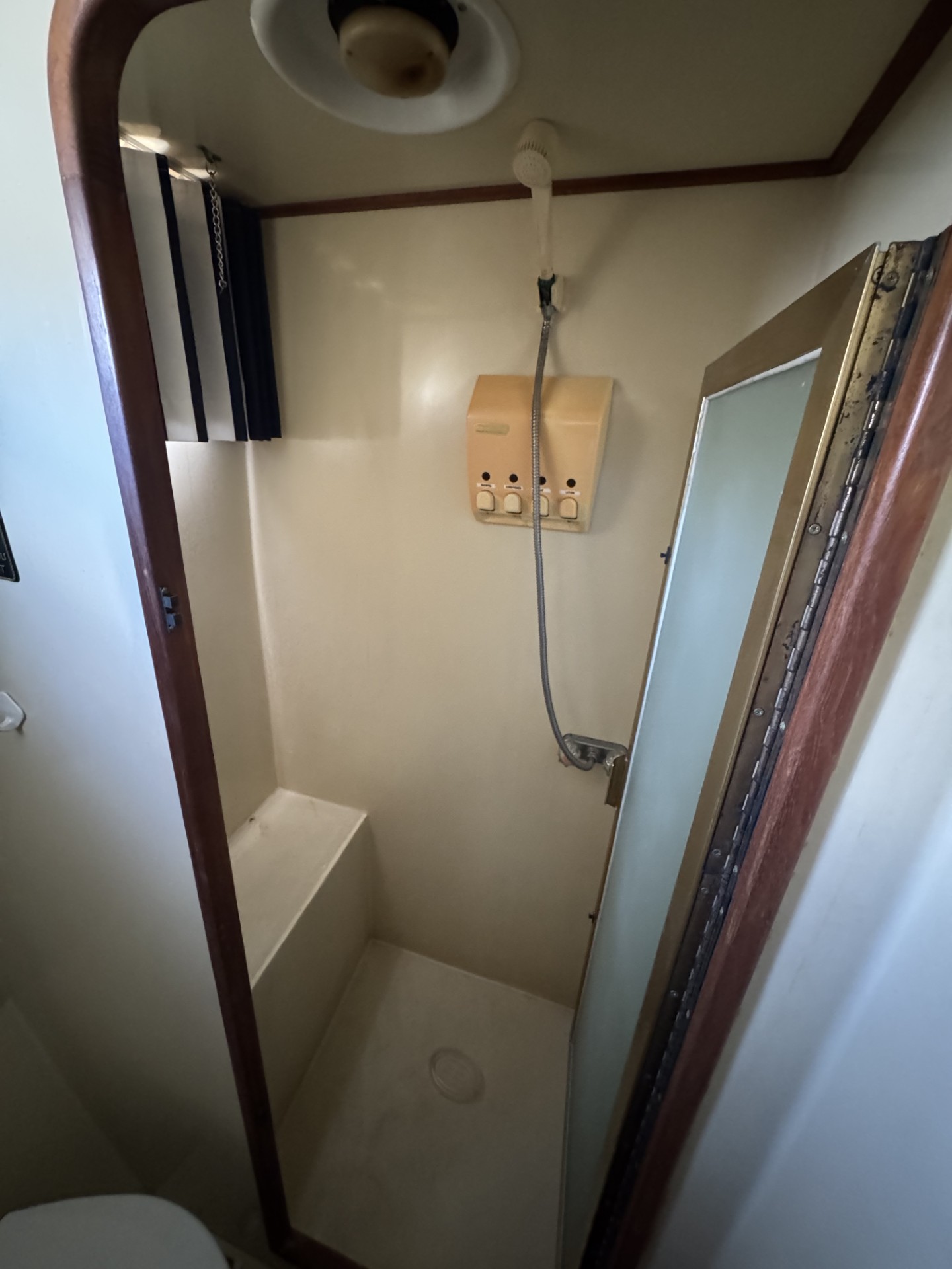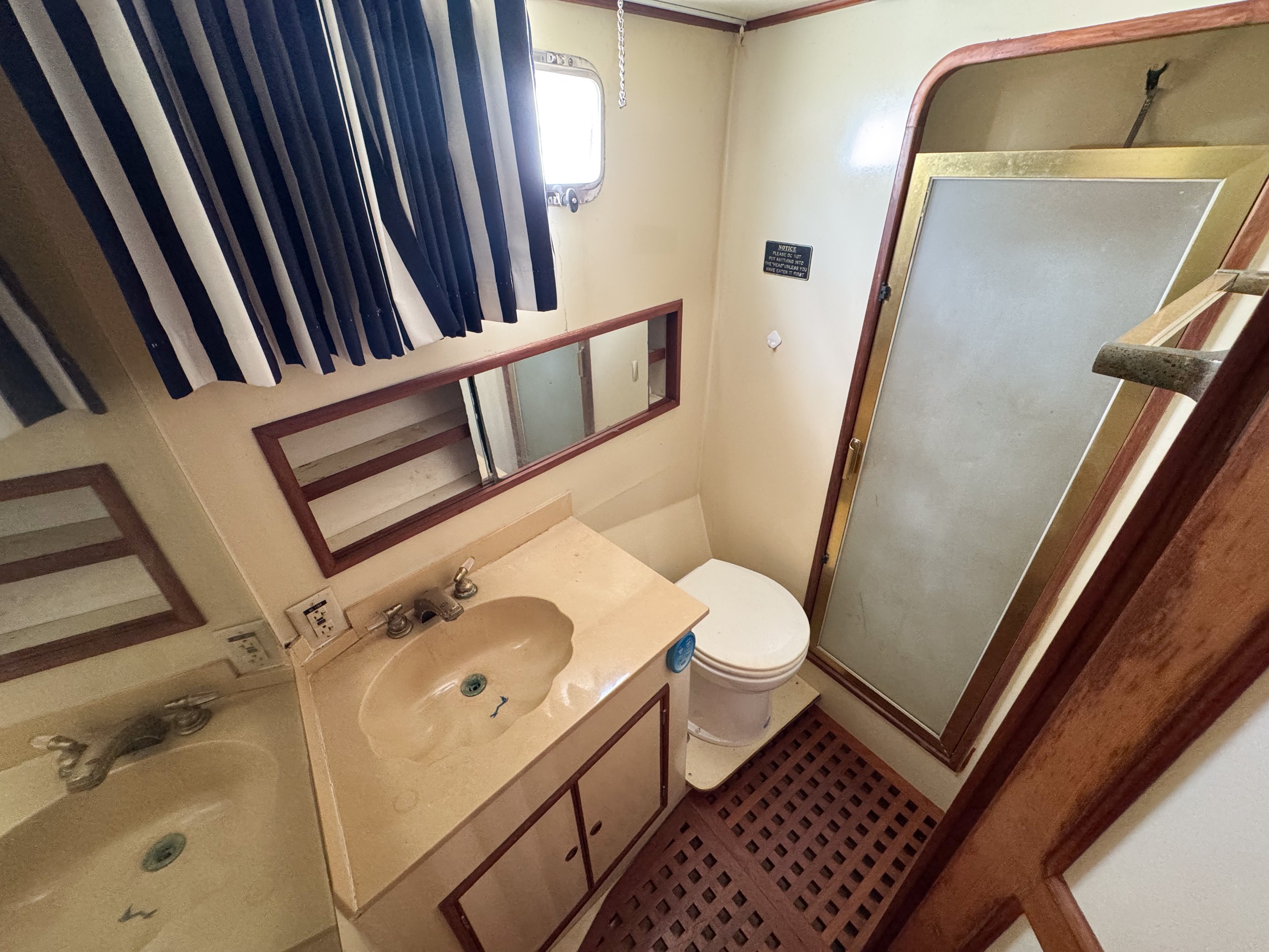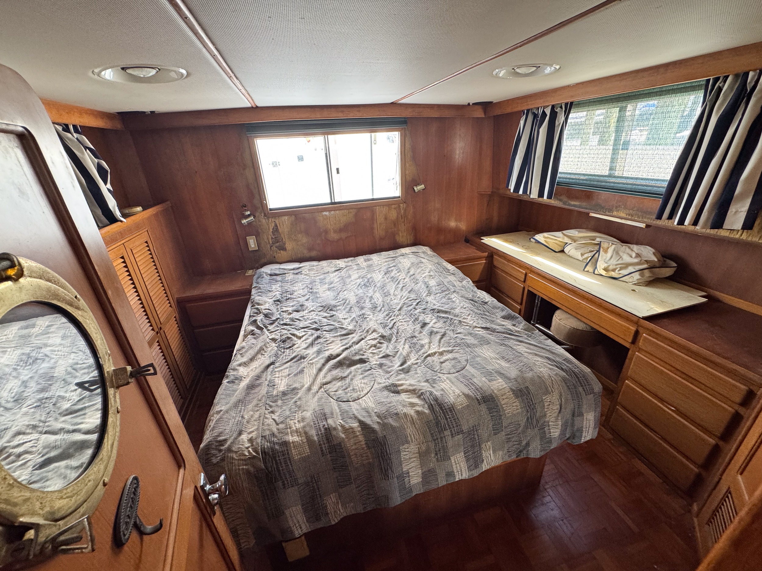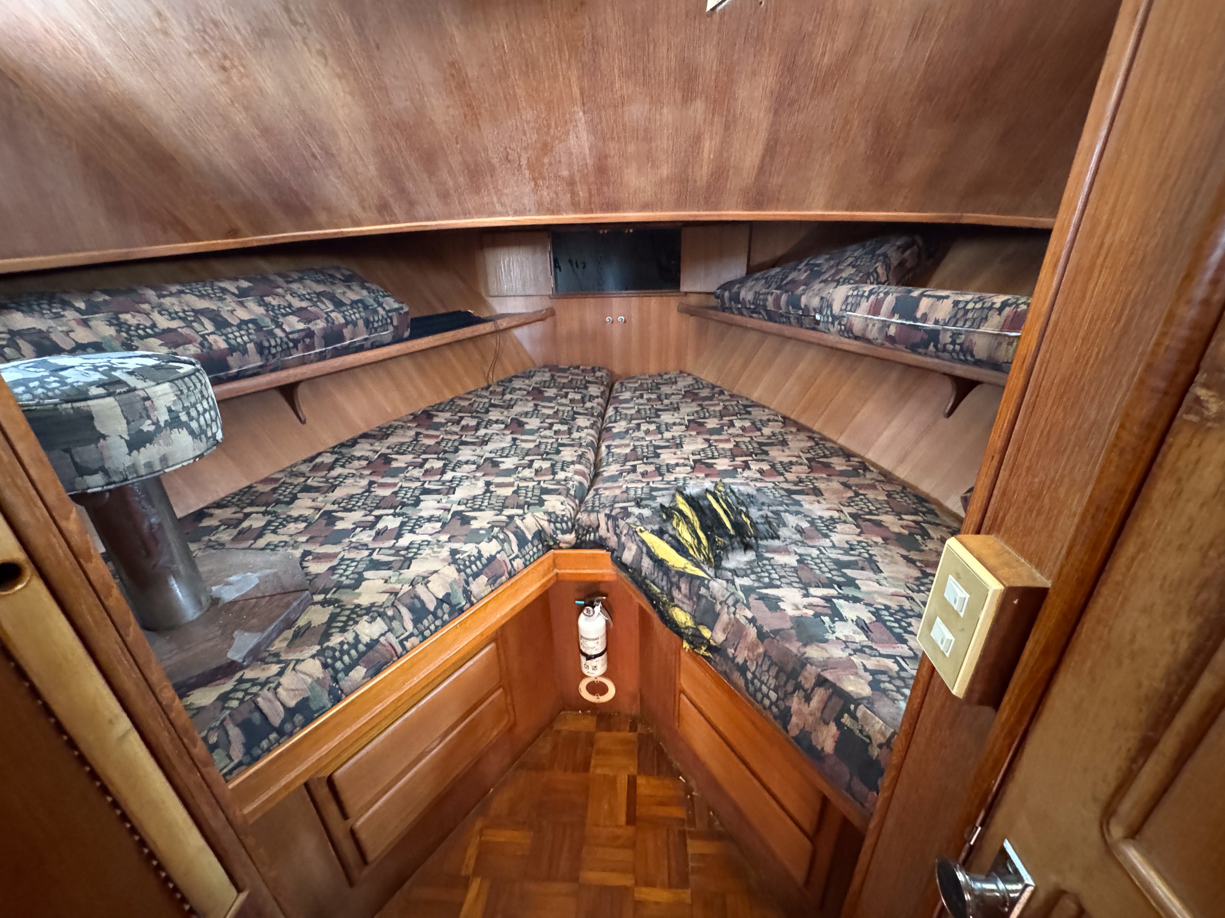 Equipped with a V berth to sleep two and a Queen state room to the aft. The aft has a stand-up shower and head, along with the front V berth.
